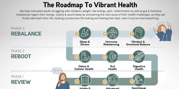 Our Back To Wellness Roadmap is a unique approach to help women regain their energy, focus and gut health, naturally without prescriptions so they can live life fully, feeling and looking their best… especially if you’ve already seen lots of doctors.